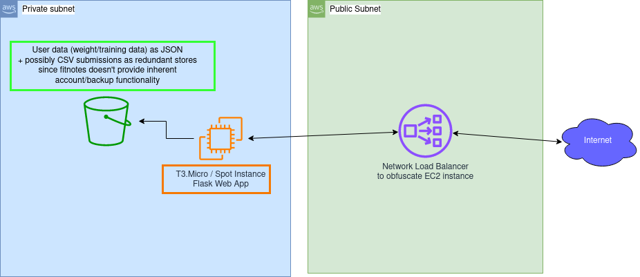 I’ve designed the app to be relatively stateless; this means all user data can be quickly produced anytime they submit their Fitnotes file (no functionality for changes to data server side – all changes should be made within the app).